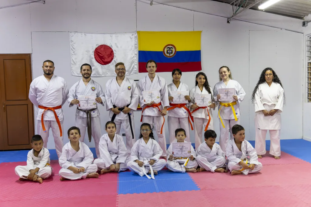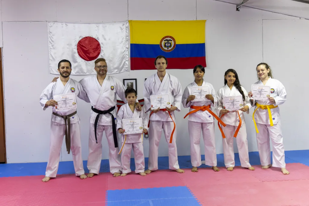 La ceremonia se realizó en las instalaciones del Dojo de Karate de la institución, reunió a estudiantes de todas las categorías, desde principiantes hasta avanzados, quienes previamente demostraron su destreza con katas, kumite y técnicas fundamentales frente al Shihan Barlaam Fernando Pizarro Castro 7° Dan, director técnico del Instituto Colombiano de Karate Tradicional (ICKT).